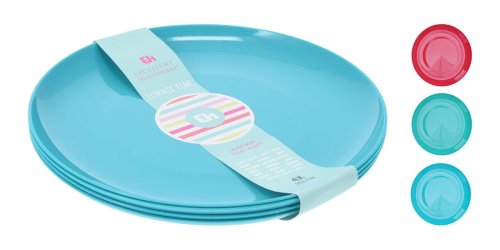 Talíř mělký 21 cm, PH mix barev (4 ks). průměr: 21 cm materiál: plast mix barev: červená, zelená, modrá balení: 4 ks Plastový talř je vhodný nejen pro děti, je nerozbitný a lehce omyvatelný.