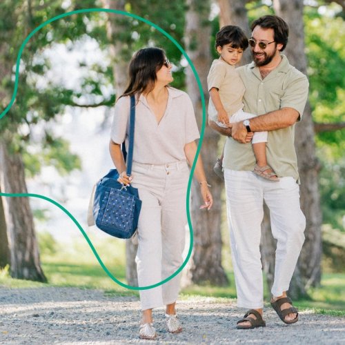 lze nosit různými způsoby: v ruce, na rameni, přes tělo nebo na kočárku (dodává se včetně klipů na kočárek)