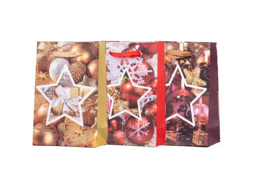 Malá dárková taška o rozměru 100×150 mm s elegantními motivy vánočních ozdob v mixu zlaté, červené a fialové barvy. Vyrobena z kvalitního pevného papíru, ideální pro drobné dárky, šperky či malé dekorace. Stylové vánoční provedení dodá každému dárku sváteční atmosféru. Zboží je dodáváno v mixu. Doručované zboží je vybíráno náhodně a nelze vybrat konkrétní provedení.