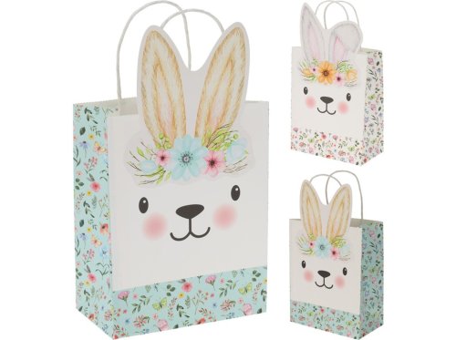 Dárková taška o rozměru 180×100×230 mm s veselým motivem velikonočního zajíce v různých barevných variantách. Jednotlivé tašky jsou dodávány v mixu a barvy se mohou lišit.
