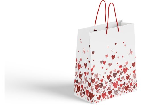 Taška dárková 180x80x230 mm srdce, bílá, červená