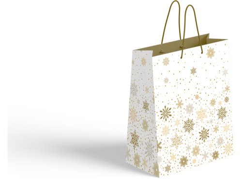 Taška dárková 260x120x320 mm Vločky, bílá, zlatá