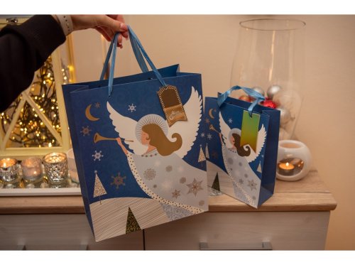 Taška dárková 260x320 mm anděl, bílá, modrá