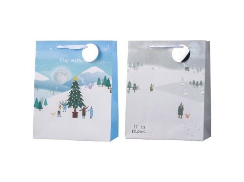 Velká dárková taška o rozměru 260×320 mm s motivy „vánočního času“ v pestrém barevném mixu. Taška je vyrobena z pevného kvalitního papíru a doplněna odolnými uchy pro snadné přenášení.