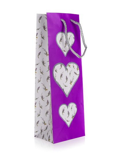 Taška dárková na láhev s dekorem LEVANDULE, je vyrobena z papíru a vybavena textilním uchem. Rozměry tašky: 12 x 35 x 9 cm. V nabídce máme na výběr další 4 velikosti a 5 dekorů.