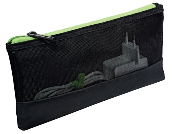 Samostatné vyjímatelné pouzdro pro napájecí adaptér a další kabely, praktické průhledné síťované kapsy na kabely a drobné příslušenství