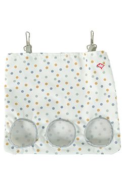 Pytle jsou vyrobeny ze 100 % recyklovaného materiálu a jsou dodávány v obalu ze 100% recyklovaného kartonu, což z nich činí ekologicky šetrnou volbu. Jsou vybaveny háčkem na zavěšení, který umožňuje snadné upevnění do klece či výběhu. Velkou výhodou je snadná údržba – pytle lze prát v pračce na 30 °C, což zajišťuje hygienu a dlouhou životnost. K dostání ve dvou velikostech.