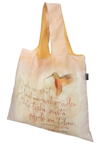 Ekologická a designová taška s aforismem je praktická a dostatečně veliká i na větší nákupy. Sbalíte do malé ruličky a máte v kabelce, kdykoli je zapotřebí. Má i vnitřní kapsu. Krásné pouzdro na zip z ní dělá také výborný dárek, který bude přinášet inspiraci při každém použití. Vyrobená z recyklovaných PET lahví, rozměry 50x42cm, nosnost až 20kg.