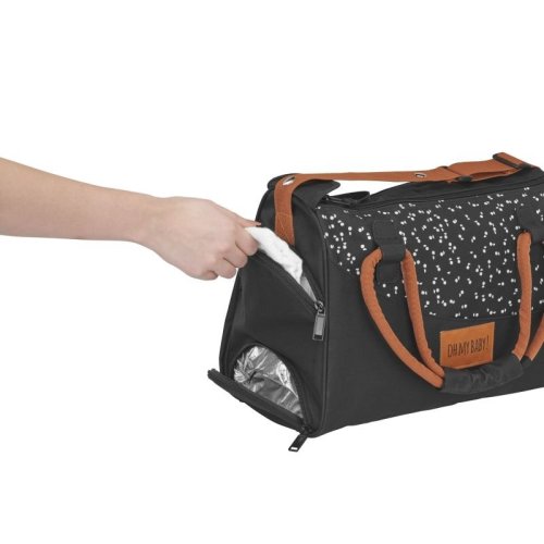 Je to velmi prostorná taška a snadno do ní uložíte náhradní oblečení, pleny, pokrývky, jídlo, zdravotní záznamy atd. Má 5 vnějších kapes, z nichž 2 jsou na zip. Díky širokému otevírání do tašky uložíte všechny potřebné věci.