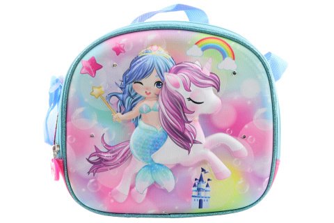 Taška přes rameno s motivem jednorožce s mořskou pannou. Přední část při poklepání bliká (taška obsahuje neměnitelné baterie). Taška má 1 velkou přihrádku na zip. Rozměry cca 25x22x10 cm. Baleno v sáčku. Výrobek není hračka.