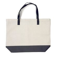Nákupní taška s černými uchy a dnem s uzávěrem na zip Vhodná pro sublimační potisk Materiál: 100% polyester, lněný vzhled Ucha tašky černá, délka 23 cm Rozměr 39 x 52,5 cm Barva světle béžová