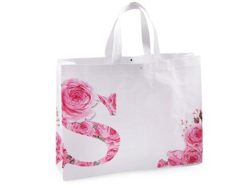 Do velké tašky z [laminované] netkané textilie s potiskem růží naskládáte plno věcí. Má dvě ucha, skvěle se složí třeba do kabelky. Díky opakovanému používání je šetrná k životnímu prostředí, stále častěji nahrazuje igelitové tašky. Hodí se k reklamním účelům. Není určená na těžké nákupy.