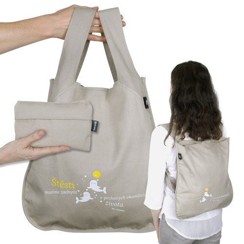 Někdy batoh, jindy taška - to je taškobatoh. Je menší než batoh, takže si ho můžete sbalit a bude po ruce, až bude potřeba. A je na Vás, jestli ho pak ponesete jako tašku přes rameno, nebo jako batoh. Má široké ramenní popruhy a kapsa, ve které je sbalený, se přemění ve vnitřní kapsu na drobnosti. A svým designem - a citátem - může přinášet inspiraci při každém použití. "Štěstí musíme zachytit v prchavých okamžicích života." - Sri Chinmoy