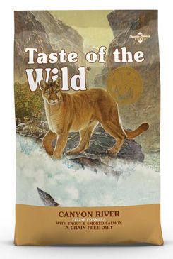 Když je šelma unavená z neustálého číhání na zvěřinu, v americkém kaňonu má ještě jednu osvěžující možnost. Někdy jím totiž protéká zuřivá řeka a kočičí instinkt v ní vycítí plno šťavnatých pstruhů a lososů. Určitě jste zpozorovali, že šestý smysl má i vaše šelma, jenže ta má k divokému kaňonu daleko. Jedinečnou příležitost zakousnout takovou rybu má proto s balením Taste of the Wild Canyon River. Čerstvému pstruhovi neodolá snad nikdo, a uzený losos, to je ještě jiná liga. Opravdu kvalitní kočičí krmivo se také neobejde bez dávky taurinu pro skvělý noční zrak. Ideální výživa jak pro kočky ostřílené životem, tak koťata s lovem teprve začínajícími.