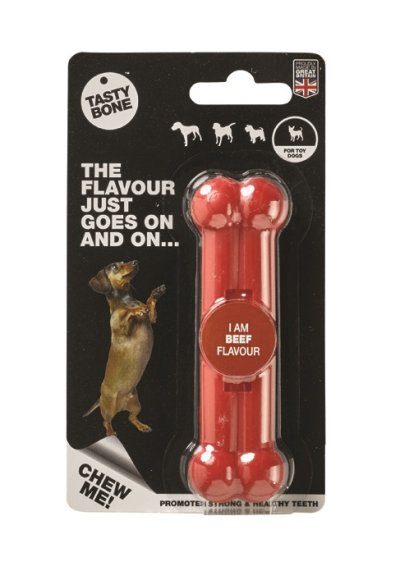 Opravdu chutná kost. Stejně jako všechny nylonové pamlsky TastyBone i tento byl testován na těch nejenergičtějších mlsounech.