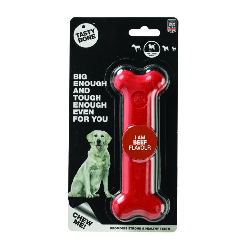 Opravdu chutná kost. Stejně jako všechny nylonové pamlsky TastyBone i tento byl testován na těch nejenergičtějších mlsounech.