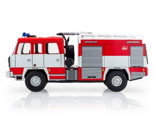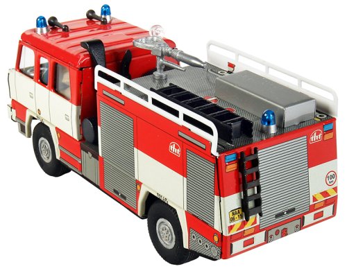 Model hasičského záchranného vozidla je vyroben z potištěného plechu. Vodní tryska na střeše je otočná.