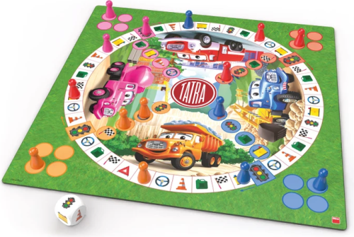 Obrázkové člověče nezlob se s oblíbenými ilustracemi auta Tatra. Kdo se se svými figurkami dostane do domečku jako první, vyhrává. Pro 2–4 hráče od 3 let