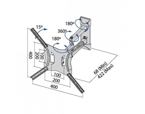 Vertikální nastavení 15 ° Horizontální nastavení 360 ° Nastavení odstupu od zdi Ano 68 mm - 520 mm