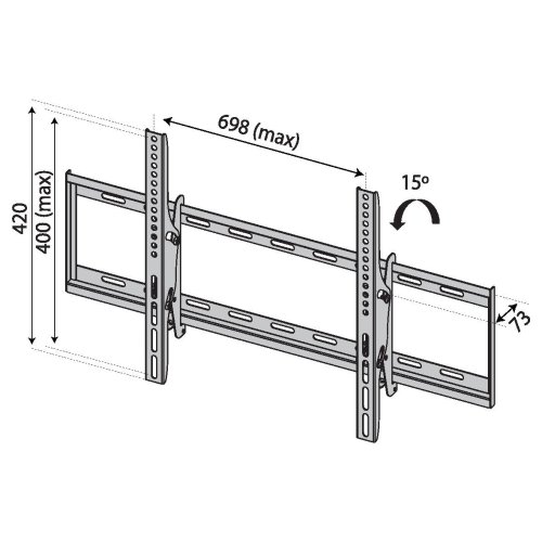*Použití: TV *Typ držáku: na zeď *Maximální velikost obrazovky: 80" *VESA: *200 x 200 *400 x 200 *400 x 400 *600 x 400 *Maximální hmotnost: 35 kg *Vertikálni polohovatelnost: 20° *Rohový držák: ne *Materiál: kov *Barva: černá