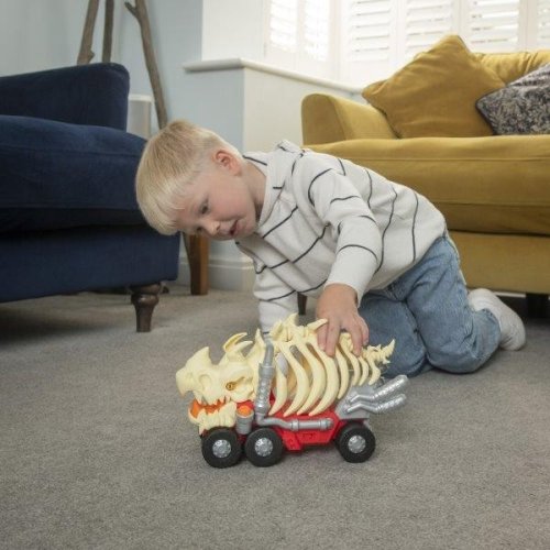 Vydej se na dobrodružnou jízdu s Teamsterz autem Triceratops! Toto jedinečné auto v designu dinosaura vydává realistické zvuky řvoucího Triceratopse a má žluté blikající oko, které dodává hře tu správnou atmosféru. Zatlač Triceratopse dopředu a sleduj, jak otevírá své čelisti! Navíc si do hrudního koše Triceratopse můžeš uložit svá oblíbená autíčka.