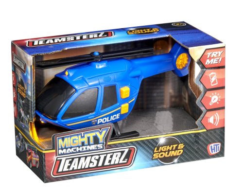 Teamsterz helikoptéra má světelné a zvukové efekty. Je vhodná pro děti od š let. Výrobek vyžaduje 3× LR44 baterie, které nejsou součástí balení.