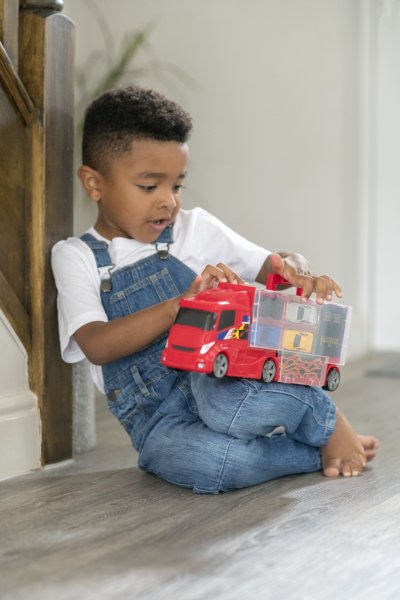 Set obsahuje 4 autíčka různých modelů, které se dají snadno naložit na nákladní vozidlo a převážet na různých trasách. Tento herní set pomáhá dětem rozvíjet koordinaci a jemnou motoriku, zatímco si užívají hodiny zábavy při hraní s autíčky a náklaďákem.