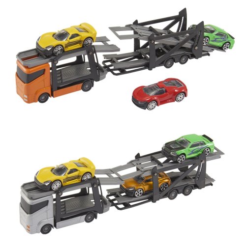 Teamsterz přepravní náklaďák se 3 autíčky v různých barvách. Náklaďák na výběr ve stříbrné a oranžové barvě.