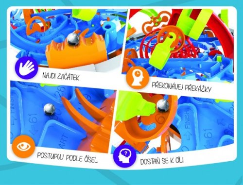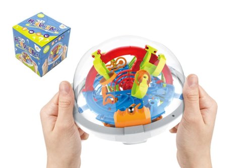 Hlavním úkolem je provést kuličku bludištěm. 3D bludiště, ve kterém musíš manévrovat malou kuličkou přes náročné překážky od začátku (pozice 1) až do konce (pozice 100). Plastovou kouli, do které je celý labyrint uzavřen, budeš muset mnohokrát otočit o 360°. Klíčem k vítězství je trpělivost, kdo spěchá, daleko se nedostane. Otáčej hlavolamem tak, aby byla kulička stále v rovnováze, jinak hrozí, že vypadne a ty budeš muset začít znovu. Přemýšlej a zkoumej dráhu, čeká tě spousta nástrah, které budou potřebovat přesný pohyb a rychlost. Vyřešit některé úseky nemusí být vždy lehké, ale vše se dá zvládnout. Rozměr hlavolamu: 12 cm Rozměr krabice: 12 x 12 x 12 cm Vhodné od 3 let