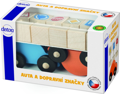 balení obsahuje 6 základních dopravních značek a 2 autíčka vyrobeno v České republice