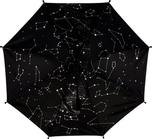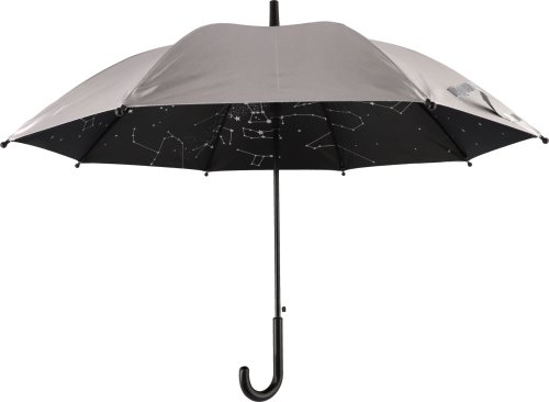 Vystřelovací deštník zaujme netradiční kombinací stříbrné barvy a dekorem hvězdné oblohy na vnitřní straně.