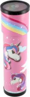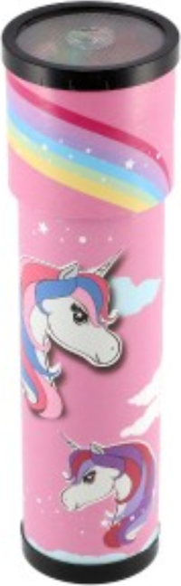 Pořiďte si stylový kaleidoskop! S motivem jednorožce pozoruj proti světlu magické obrazce... Vzdělávací a zábavná hračka podporující představivost dětí, která nezklame! Rozměr kaleidoskopu: 16,5 cm Vhodné pro děti od 3 let