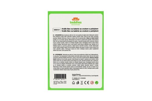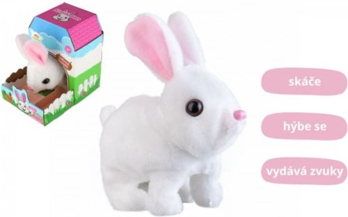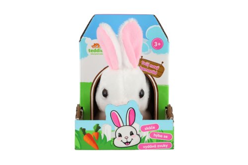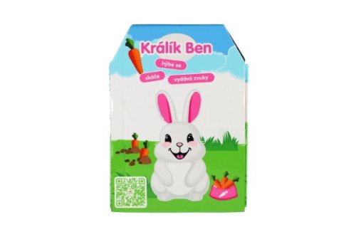Roztomilý králíček Ben vydává zvuky, hýbe ušima a skáče. Je balen v krabičce, která je závoveň jeho domečkem. Baterie 2x AA nejsou součástí výrobku. Rozměry balení 13 x 19 x 18 cm. Vhodné pro děti od 3 let.