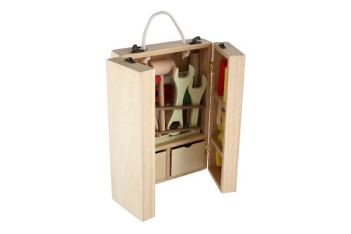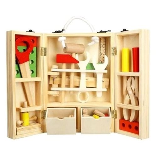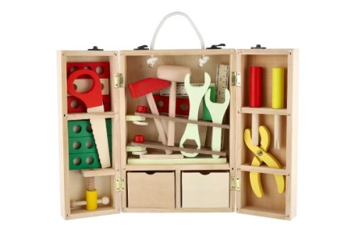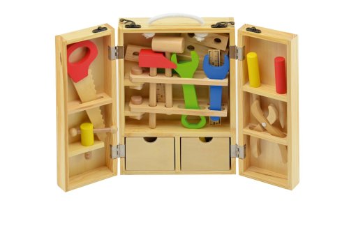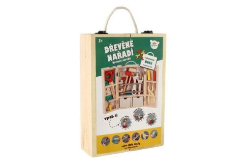 Dřevěný kufřík s nářadím obsahuje šroubováky, kladívka, klíče, matice, šrouby, úhelník, pravítko, pilu a spoustu dalšího. Hračka pomáhá rozvíjet technické chápání a jemnou motoriku rukou. Pro všechny malé kutily. Rozměry balení 21 x 30 x 8 cm Vhodné pro děti od 3 let.