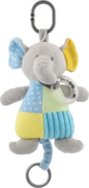 Melodie se přehraje zatažením za plastový kroužek, délka melodie po natažení 1 min 20 vteřin, pružinový hrací strojek je uvnitř hračky, chrastítko s kuličkami, klip pro zavěšení na postýlku nebo kočárek, texturovaný povrch tkaniny, měkký povrch stimuluje rozvoj smyslového vnímání.