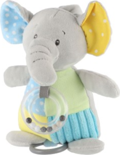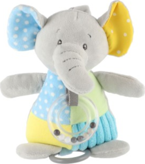 Roztomilý barevný slon je vyroben z měkké hebké látky.