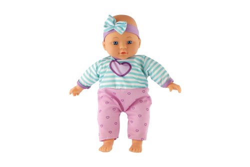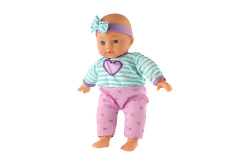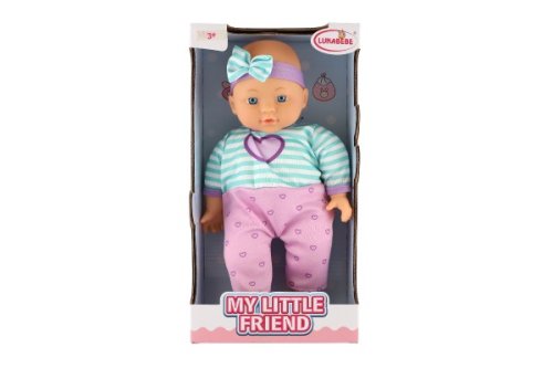 Roztomilá panenka s měkým tělíčkem v krásném oblečku i s čelenkou. Toto miminko udělá jistě radost každé holčičce a stane se tak její nepostradatelnou součástí. Velikost panenky: 30 cm Rozměr balení: 17 x 33 x 10 cm