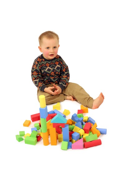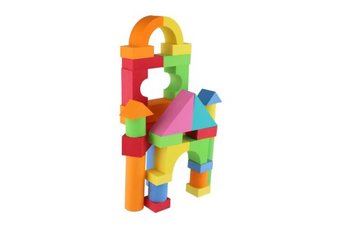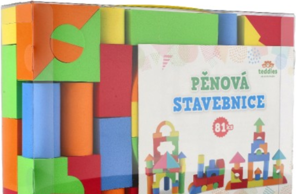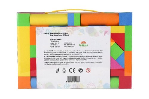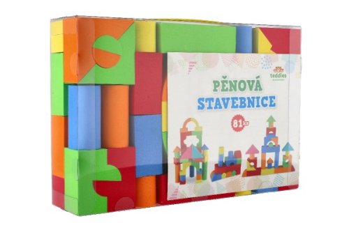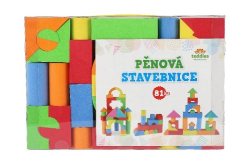 Kostky jsou vyrobeny z měkkého, gumového a netoxického materiálu. Pomocí kostek se u dětí rozvíjí jemná motorika rukou a díky barevnému provedení kostek i zrak. Kostky jsou baleny v plastové tašce. Sada obsahuje 81 ks. Rozměry balení 32 x 21,5 x 7,5 cm. Vhodné pro děti od 3 let.