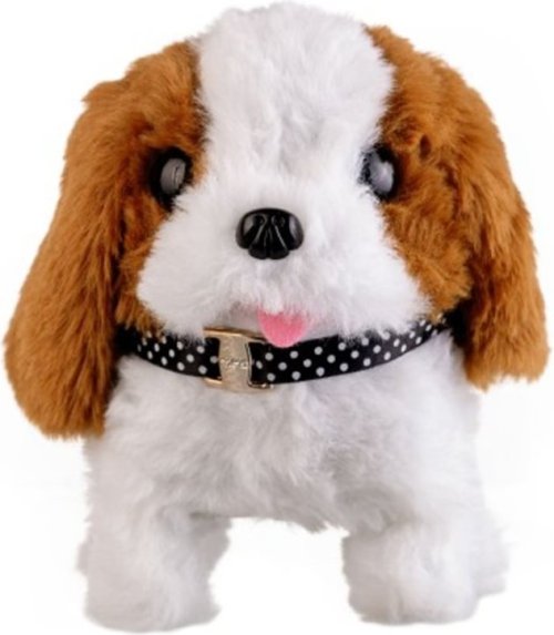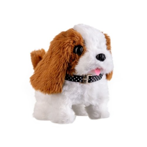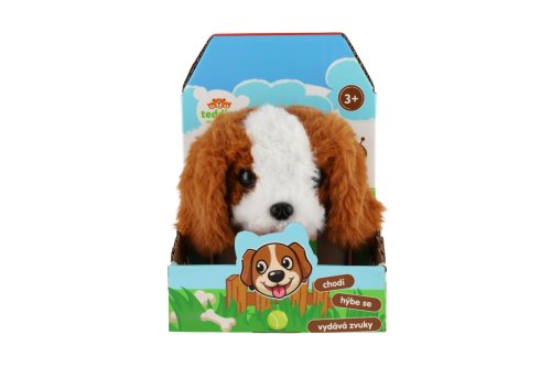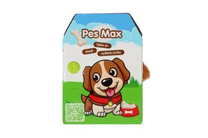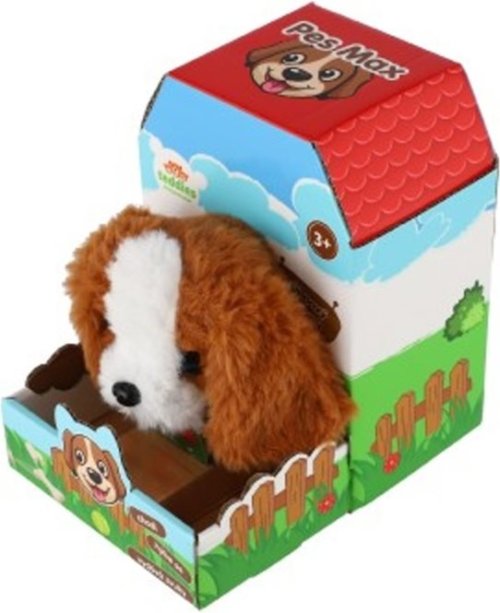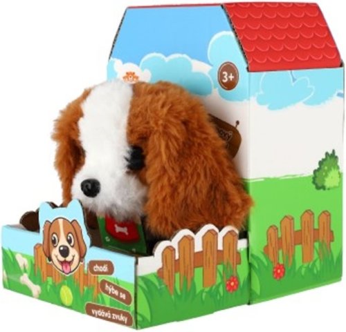 Roztomilý pejsek chodí dopředu i dozadu a vydává reálné zvuky štěkání. Pejsek je balen v krabičce, která je zároveň jeho boudou. Baterie 2x AA nejsou součástí výrobku. Rozměry balení 13 x 19 x18 cm. Vhodné pro děti od 3 let.