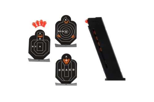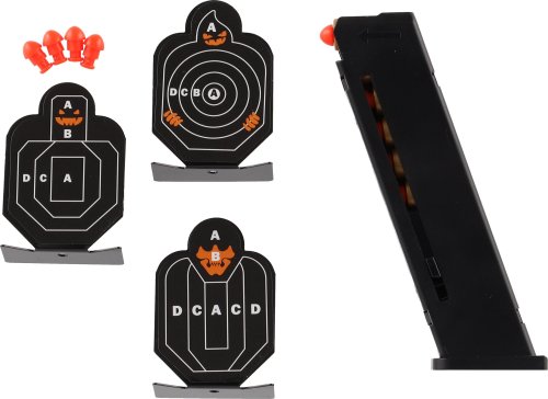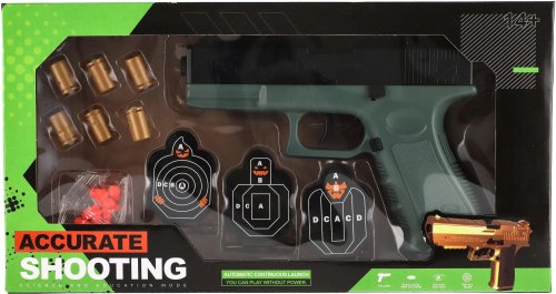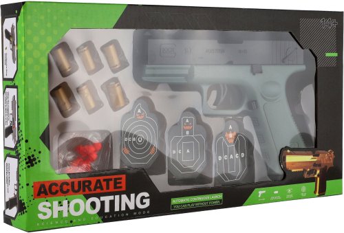 Nabij, zamiř a vystřel na terč! Podaří se ti trefit přímo střed? Můžeš si dát třeba turnaj o nejlepšího střelce se sourozencem! V balení najdeš 6 nábojů a tři terče! Zábava může začít! Rozměry balení 34 x 18 x 4,5 cm.