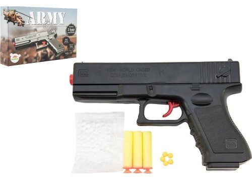 Hravá zábava především pro kluky! Pistole na pěnové náboje, vodní i gumové kuličky zabaví každého pistolníka. Vlož kuličky, nabij, zamiř a střílej. Velikost kuliček je 6 mm. Rozměr pistole: 20 cm Rozměr krabičky: 23 x 15 x 4 cm. Vhodné pro děti od 8 let.