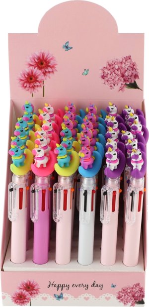 Překrásné designové pero s motivem jednorožce s různobarevnými náplněmi.