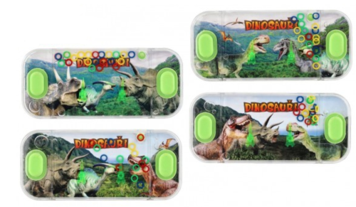Tradiční dětská hra, která neomrzí. Princip hry je jednoduchý. Mají za úkol dostat na špičaté stožárky kroužky vznášející se ve vodě a to pouhým stiskem tlačítka. Tato hra podporuje soustředění a trpělivost. Vybrat si můžete z několika motivů s dinosaurem. Rozměr hry: 15,5 x 7 cm Vhodné pro děti od 3 let