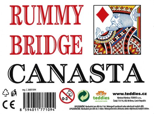 Canasta je velice známá společenská hra, oblíbená napříč generacemi.Karty hrají rády děti, rodiče i prarodiče. Karty jsou skladné a vejdou se do každého batůžku či cestovní tašky. Na dovolené prší? Nevadí, zahrajte si karty a hned budete mít lepší náladu. Karty jsou uložené v uzavíratelné plastové krabičce.