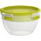 Kruhová dóza s objemem 1,0 l Systém uzavírání se 4 klipy po stranách Bezpečné pro použití v mikrovlnné troubě, mrazničce a myčce V zelené barvě