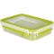 Obdélníková dóza s objemem 1,2 l Systém uzavírání se 4 klipy po stranách Bezpečné pro použití v mikrovlnné troubě, mrazničce a myčce V zelené barvě