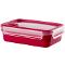 Obdélníková dóza s objemem 0,8 l Systém uzavírání se 4 klipy po stranách Funkce ohřívání jídla v mikrovlnné troubě pomocí ventilu Pevně vlisované těsnění FreshSeal Bezpečné pro použití v mikrovlnné troubě, mrazničce a myčce V červené barvě