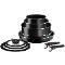 10dílná sada obsahuje: Pánve Ø 24 a 28 cm Rendlíky Ø 16 a 20 cm Hluboká pánev Ø 24 cm Skleněné poklice Ø 16, 20 a 24 cm 2 odnímatelné rukojeti