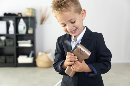 Ruční napařovací žehlička pro malé hospodyňky je jako opravdová, inspirovaná napařovačem oděvů Tefal Pure POP. S funkcí skutečné páry po stisknutí tlačítka. 3 barevné kombinace (bílá, černá, bronzová). Rozměry žehličky (DxŠxV): 3,5 x 8 x 18 cm.
