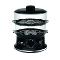 Pohodlné použití s mechanickým časovačem 2 misky na zeleninu, ryby a maso Miska na rýži Odnímatelné mřížky pro velkou kapacitou 6l Automatické vypnutí po dokončení vaření Systém pro snadné uskladnění Viditelná hladina vody Možnost doplňování vody při vaření 60 min autonomie Příkon: 980 W